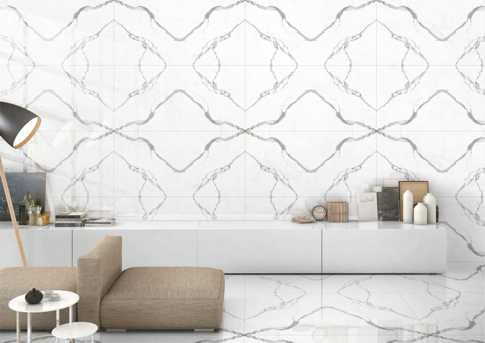 24x48 pouces Bookmatch grande dalle de porcelaine Henry gris finition brillante aspect de luxe 600x1200mm dalle grande zone de réception de bureau.