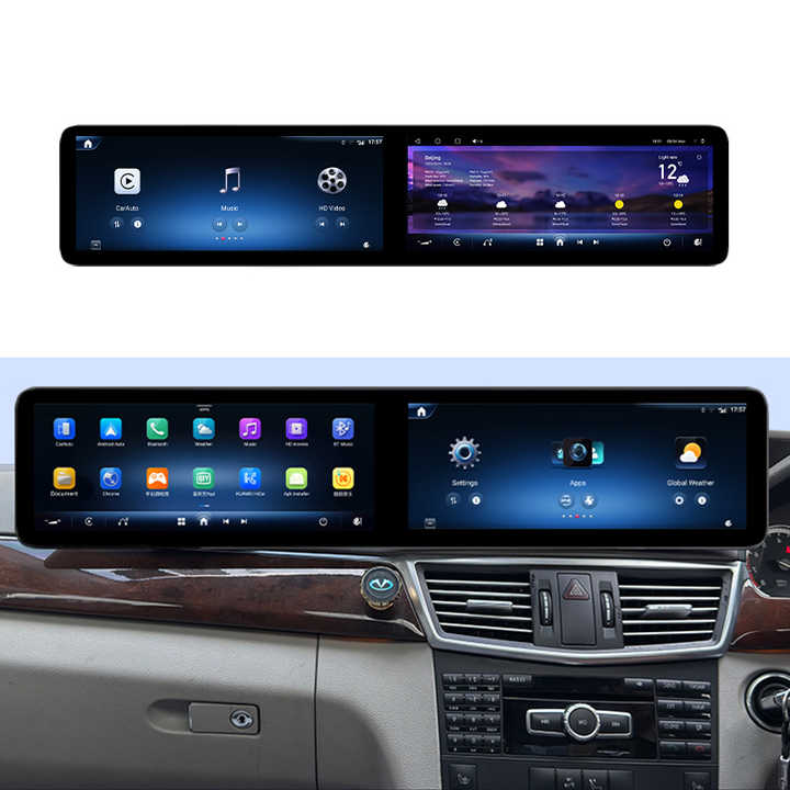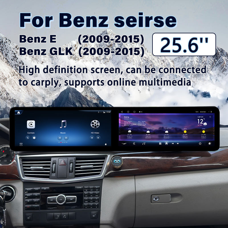 Système CarPlay à double écran de 25,6 pouces pour lecteur DVD de voiture 1 Din, navigation GPS Android, Mercedes E GLK W212 09-15, conduite à droite