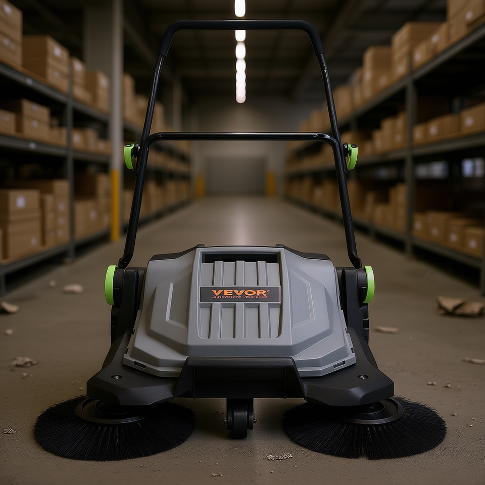Balayeuse manuelle Vevor à pousser, 25,6 pouces, avec bac de 5 gallons, usage commercial