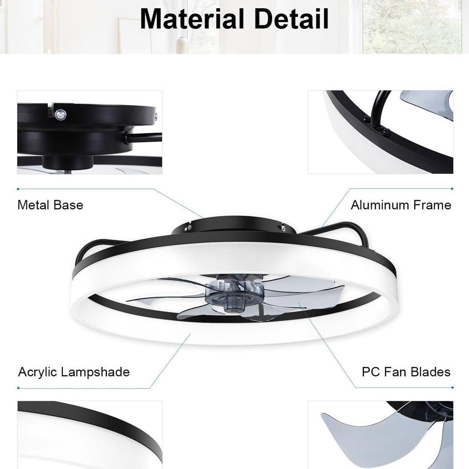 Ventilateur de plafond réversible moderne urbain de 25 pouces avec lumières LED et télécommande, 6 vitesses, intensité variable