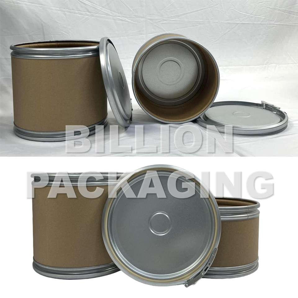 Seau en papier de 25 litres pour matières premières chimiques, étanche à l'humidité, en cuir de vache, avec cerceau et couvercle en fer