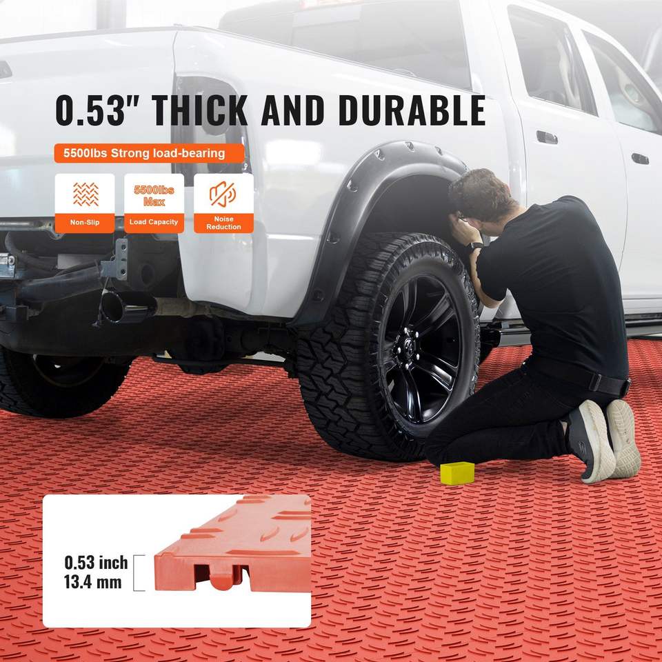 Lot de 25 dalles de revêtement de sol de garage emboîtables 12 x 12 x 0,53 pouces, antidérapantes, texture double face, en plastique pour garages