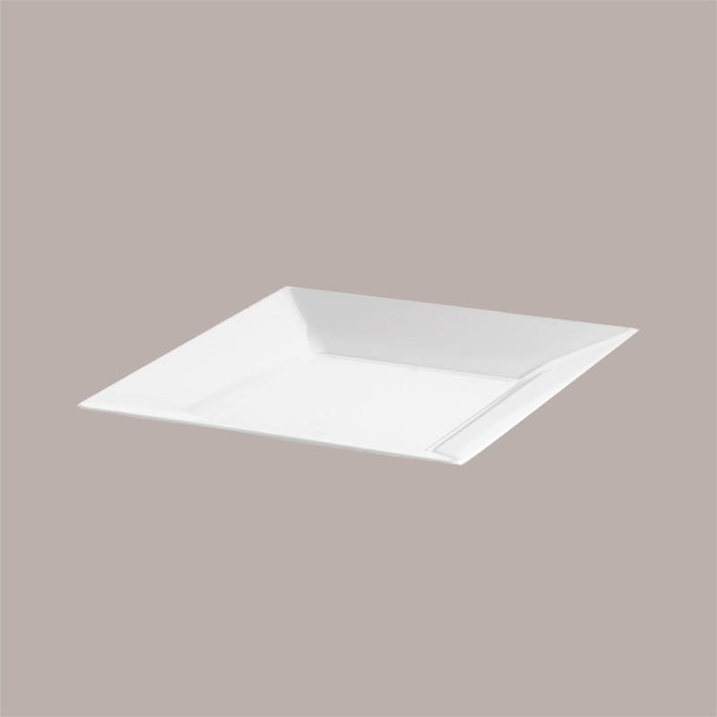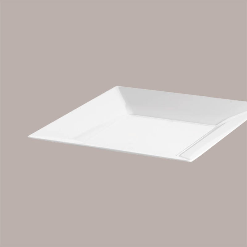 Lot de 25 assiettes carrées réutilisables en polystyrène PS blanc, bord solide, 27x27 cm, style minimaliste