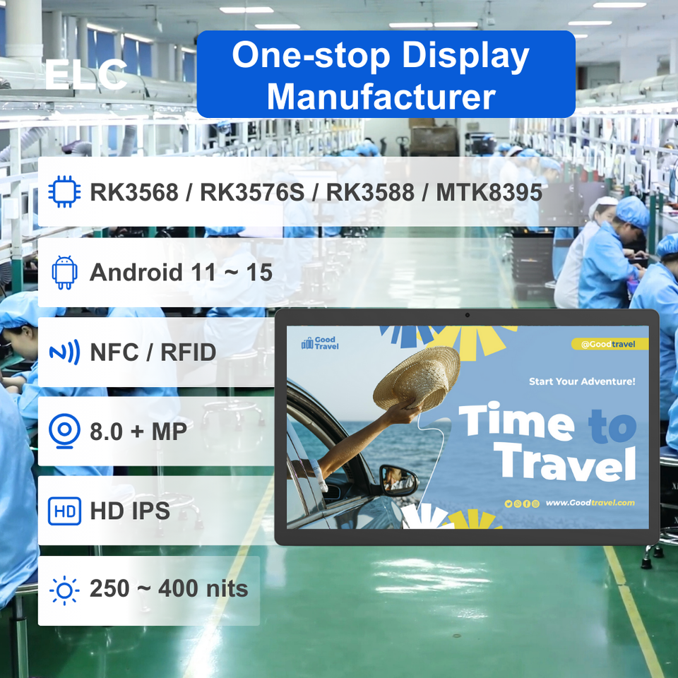 Écran tactile numérique pour affichage publicitaire, 250 nits, RK3588S2, 6 tops, 15,6 pouces, Android 13/14/15, PoE, NFC, montage mural