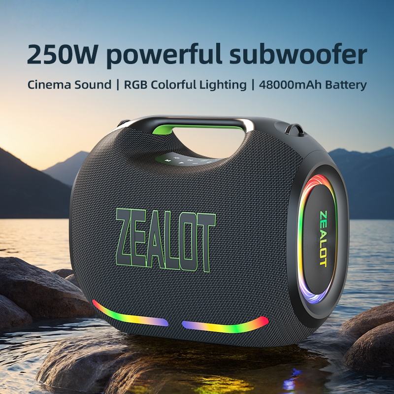 Haut-parleur sans fil portable haute puissance 250W avec batterie rechargeable, éclairage LED RVB pour l'extérieur, étanche IPX-6, Ze21