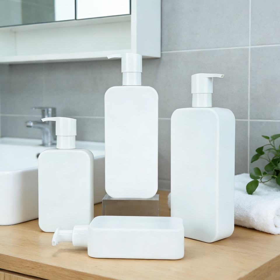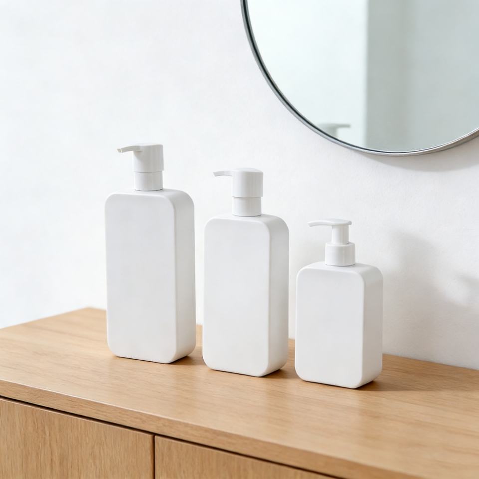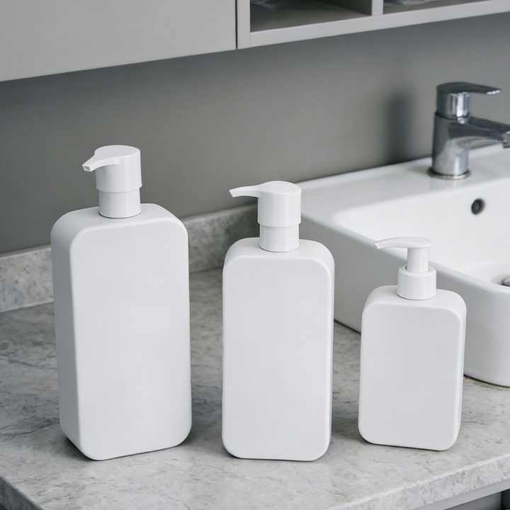 Bouteille de lotion rectangulaire en plastique PE de 250 ml, 350 ml, 500 ml avec pompe, flacon vide blanc pour shampoing, conteneur/emballage pour gel douche