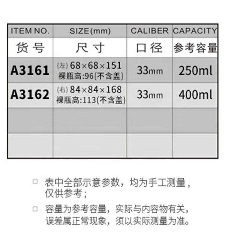 Capacité:250 ml/400 ml