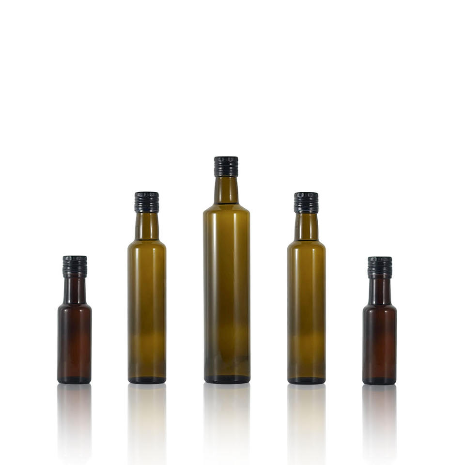 Huile d'olive extra vierge en gros, flacons en verre Marasca ronds et carrés fantaisie, vides, 250 ml, 500 ml, 1000 ml, machine à presser