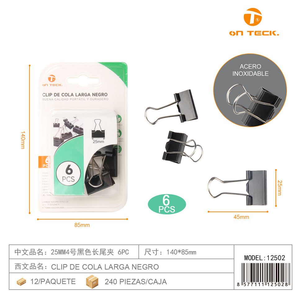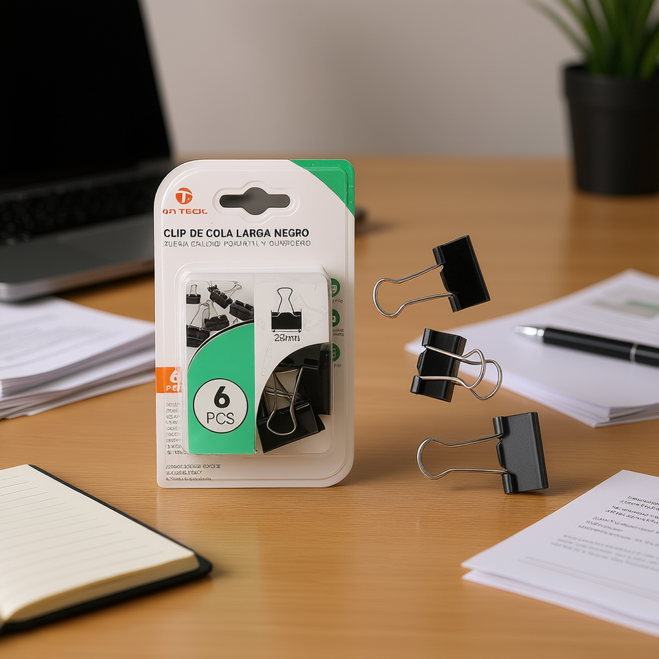 Clips de reliure noirs On Teck 25 mm, 6 pièces, clips de bureau durables pour l'organisation