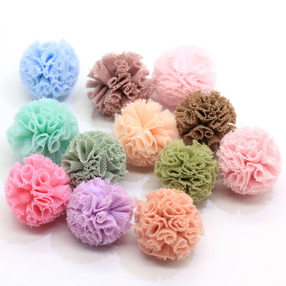 Balles Pom poms en Tulle de couleur assortie, 25MM de diamètre, grands Pompoms, artisanat pour fournitures de bricolage et décorations artisanales créatives à faire soi-même