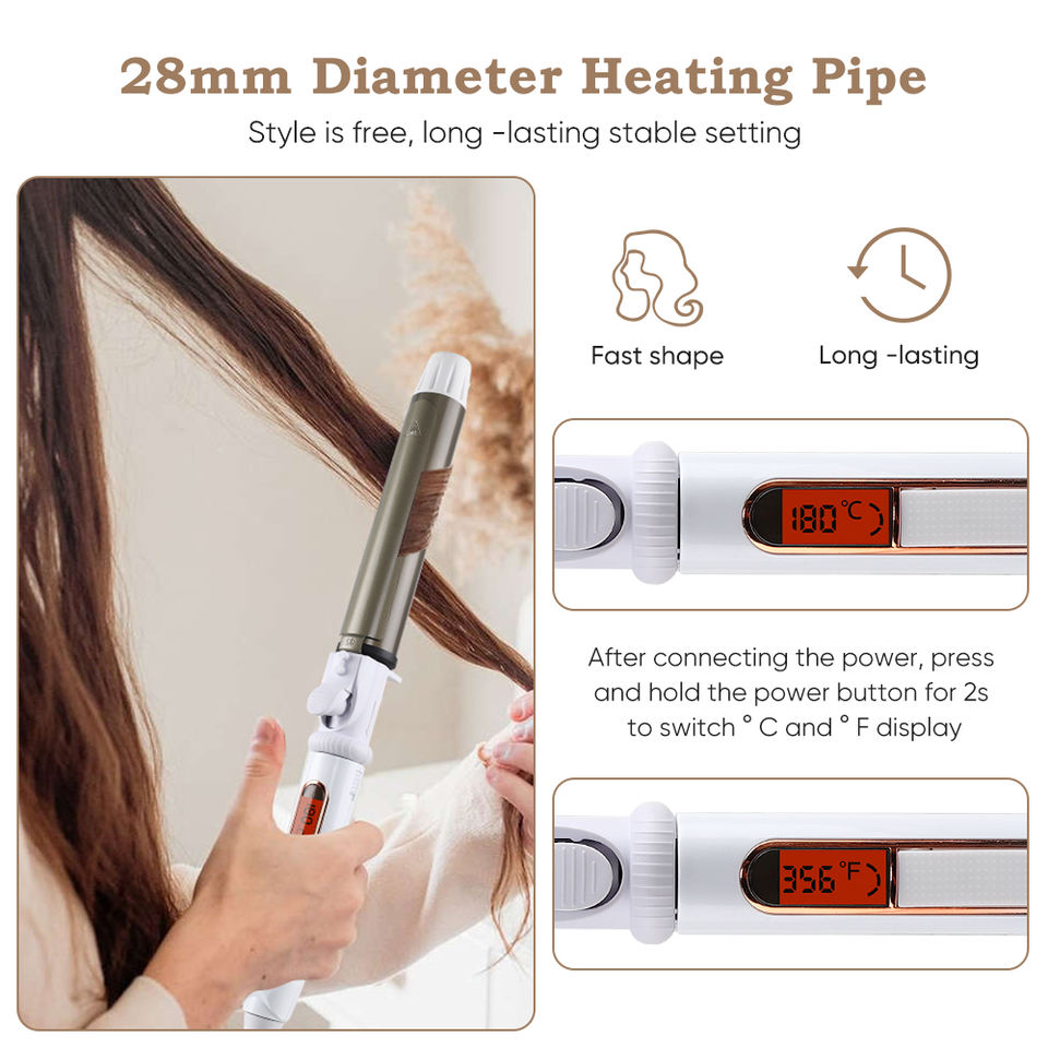 Affichage:Bague à friser les cheveux à affichage LED