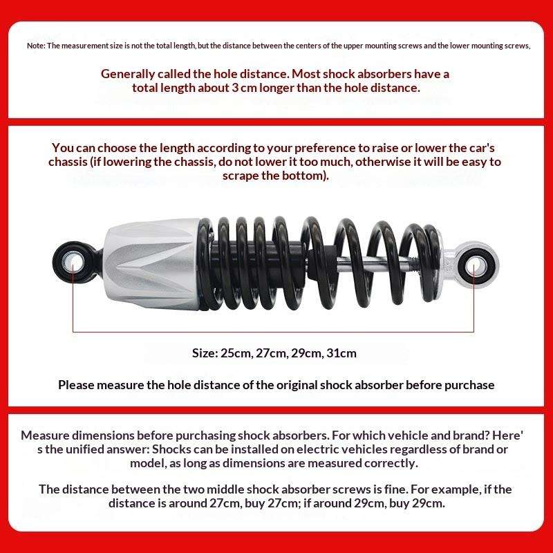 Amortisseur hydraulique arrière 25cm 27cm 29cm 31cm pour moto électrique, amortisseur à pression d'huile modifié