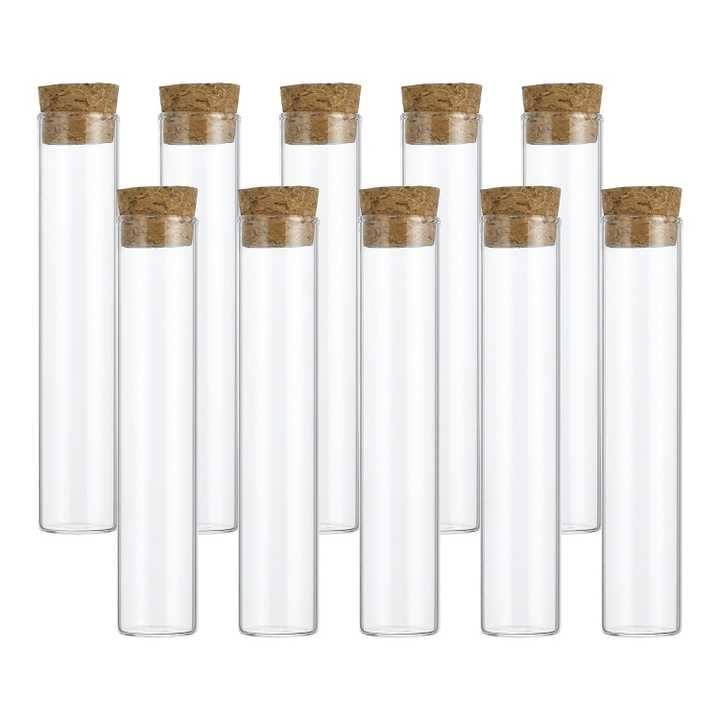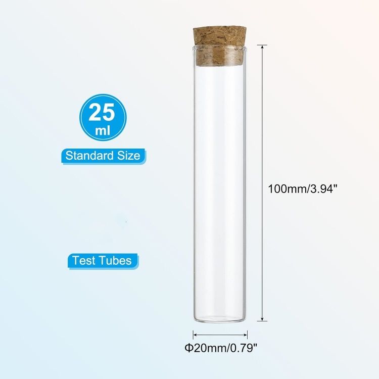 Tubes à essai en verre transparent de 25 ml à fond plat avec bouchon en liège pour les pots à café, les boîtes à bonbons, le sel de bain