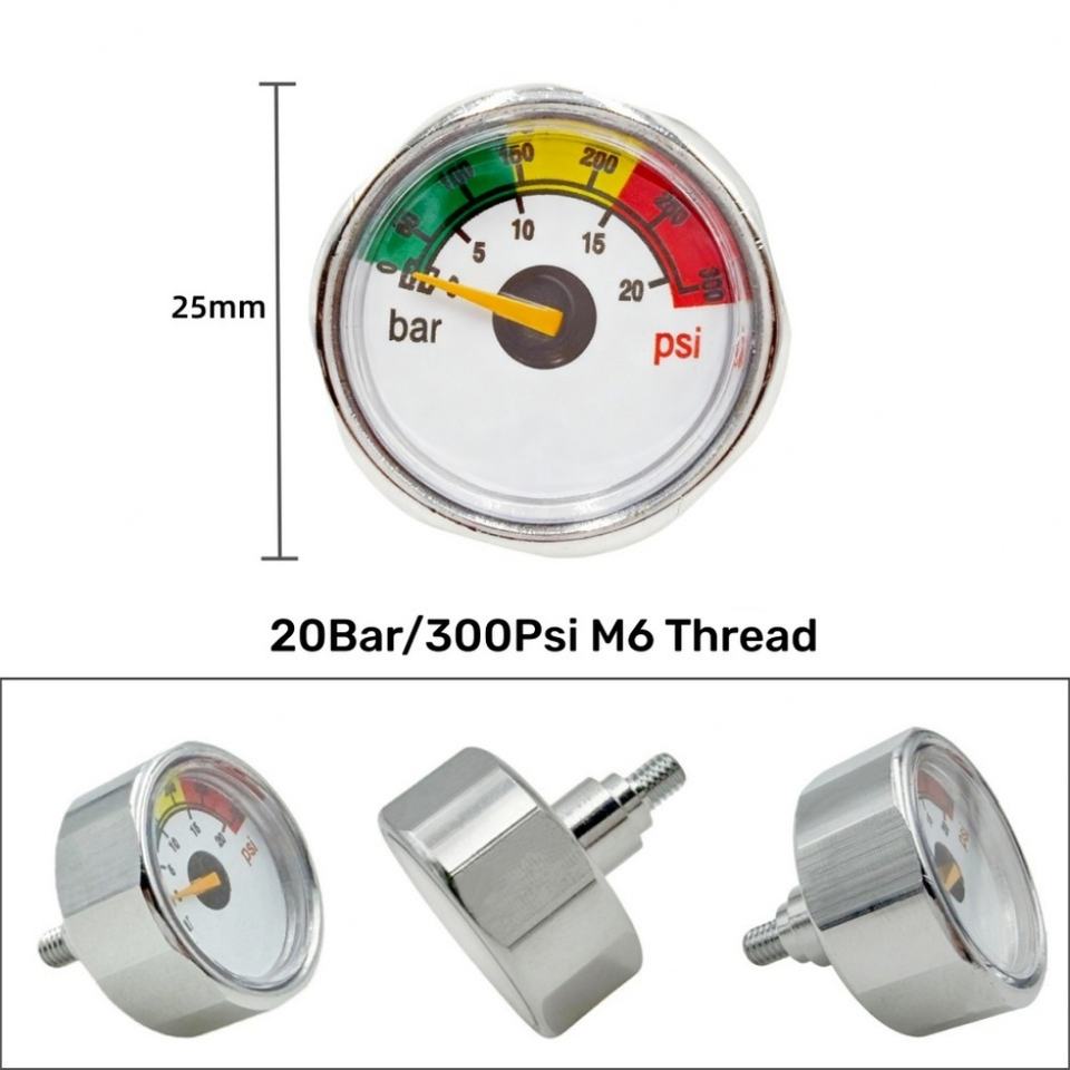 Manomètre HPA Mini M6 en acier inoxydable et cuivre de 25 mm de diamètre, 20 bars/300 PSI, pour le remplissage de bouteilles de gaz, régulateur, outils pneumatiques