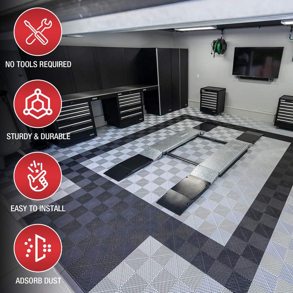25 pièces 15.7 "x 15.7" Carreaux de sol de garage à texture double face antidérapants pour garages sous-sols ateliers de réparation