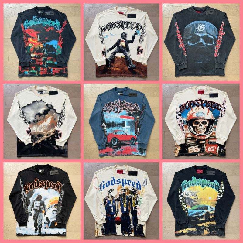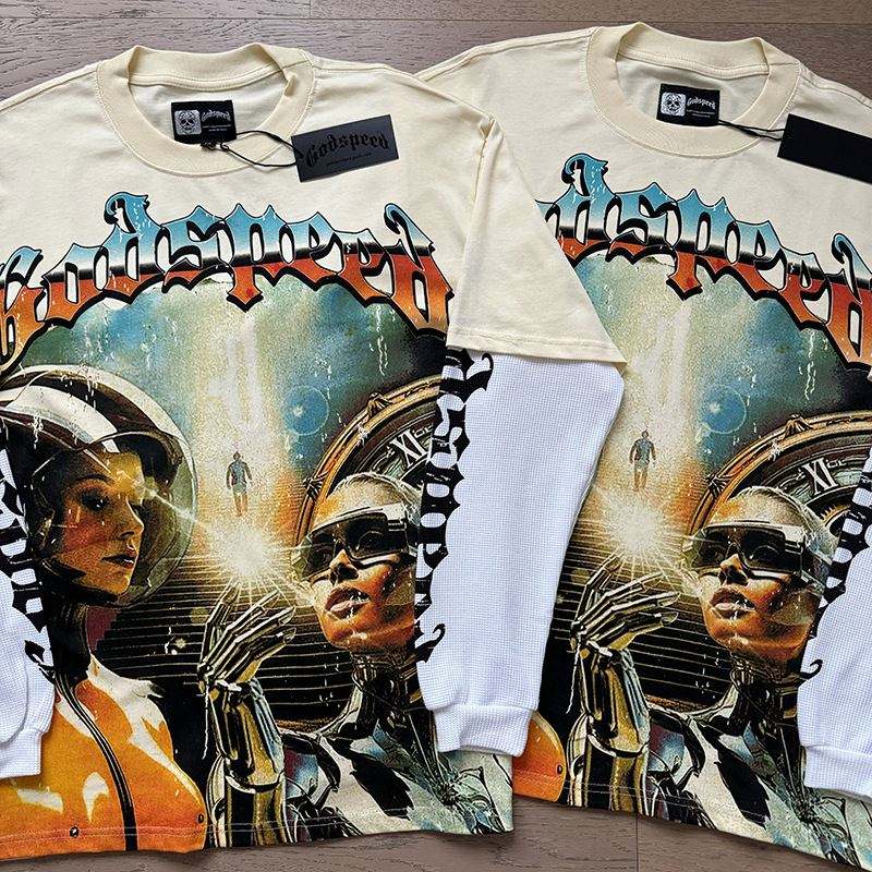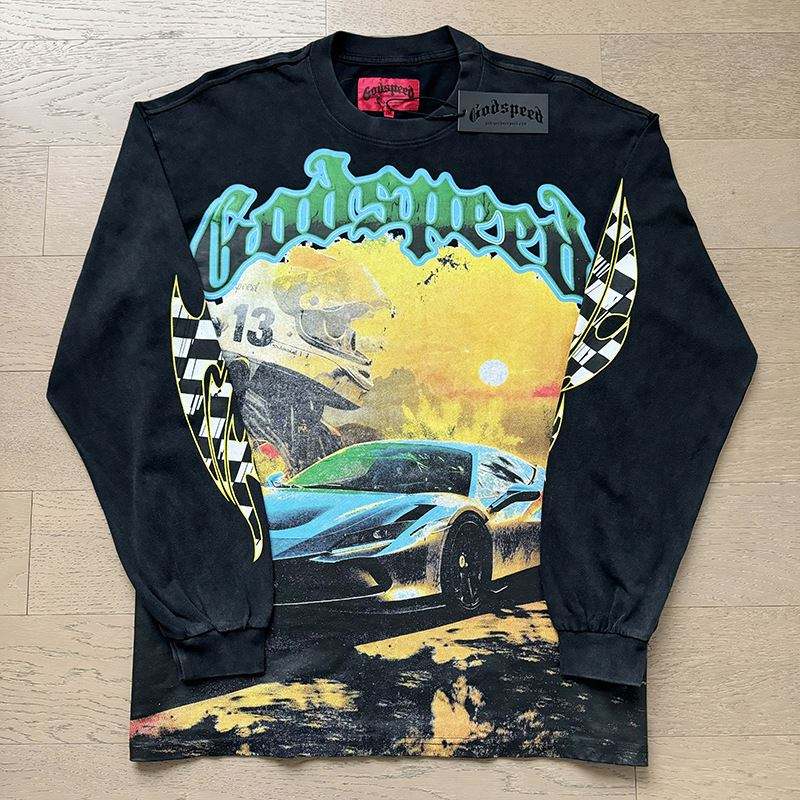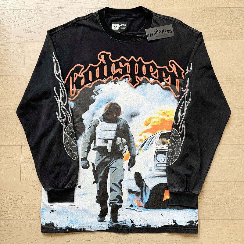 T-shirt unisexe à manches longues en coton, coupe ample, imprimé lettres, style rock rétro délavé, nouvelle collection printemps 25SS