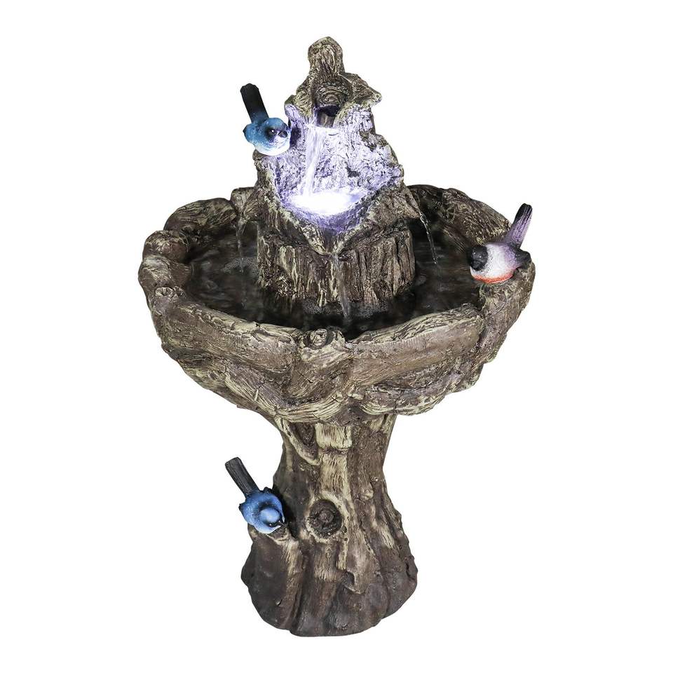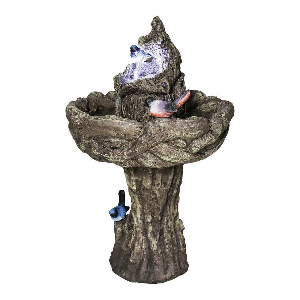 Fontaine à oiseaux en béton éclairée par LED de 26,7 pouces de hauteur, design d'arbre simulé avec piédestal pour l'aménagement de jardin