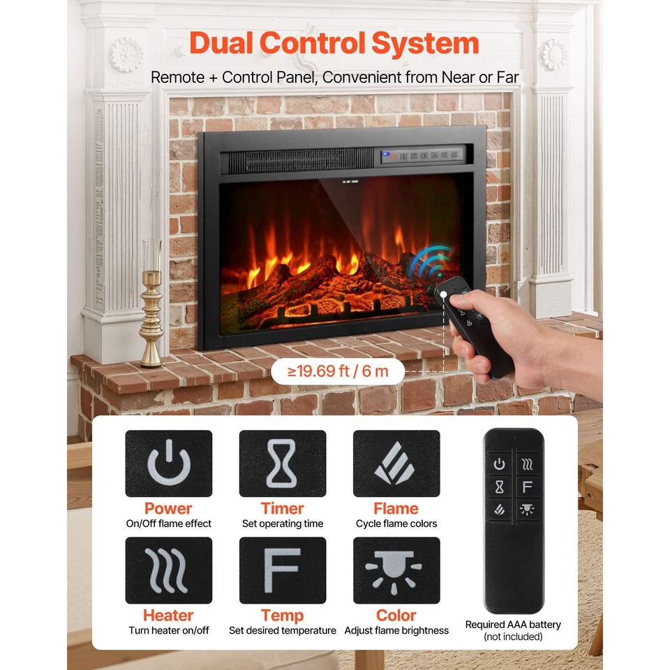 Cheminée électrique murale de 26 pouces avec luminosité de flamme réglable, minuterie de 8 heures et télécommande