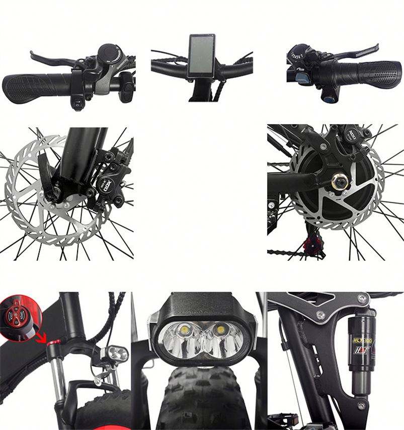 Grande fourche électrique de 26 pouces pour vélo électrique de ville, moteur de moyeu arrière 1000W 48V, batterie au lithium noire mate 48V/15ah, pneu épais pliable à 21 vitesses