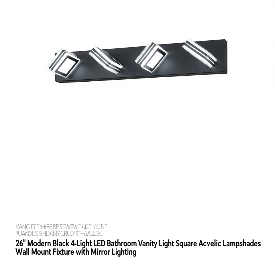 Applique murale moderne noire 26 pouces à 4 lumières LED pour salle de bain avec éclairage de miroir