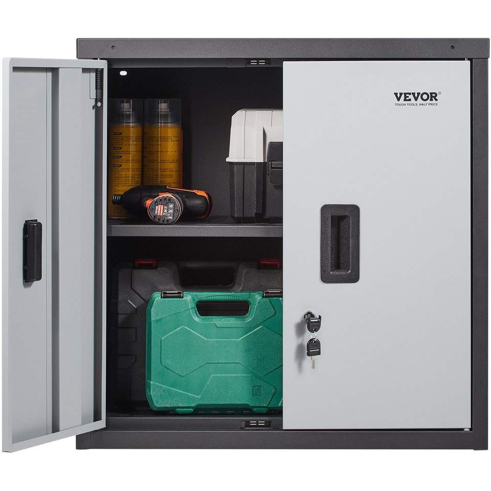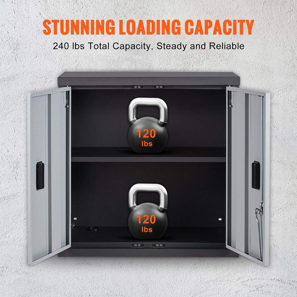 Armoire murale pliable pour outils de 26 pouces, en métal, pour garage, avec capacité de charge de 240 lb, étagère réglable, porte magnétique