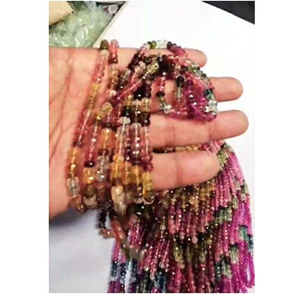 Collier de 16 pouces en perles rondes facettées de tourmaline naturelle multicolore, 26 brins, taille 4mm-6mm, lot de 1705 carats, prix US$580, Iroc Sales Gemstones