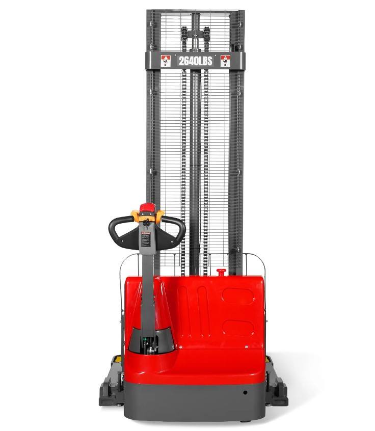 Chariot élévateur électrique à chenilles de 2640 lb, hauteur de levage de 138 po, pieds et fourches réglables