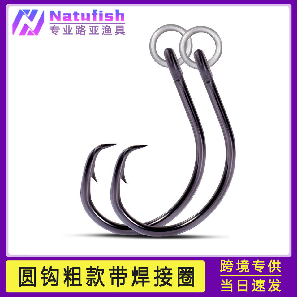 26 crochets, style épais, anneau soudé, crochet simple, forte force de traction, acier à haute teneur en carbone, pêche en mer, utilisation en eau salée, 100 paquets, plaque de fer