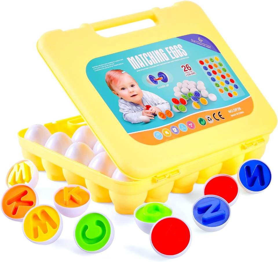Alphabet de Pâques Jeu de Bingo Montessori pour Enfants, Matching Motricité Fine, Lettres Assorties, Oeufs en Plastique, 26 Pièces