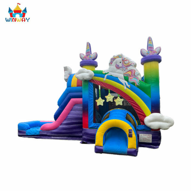 Winway 26x13ft Attractive Design Unicorn PVC Inflatable Castle Jumping House Combo 500kg Capacity for Kids' Outdoor Model Ww11