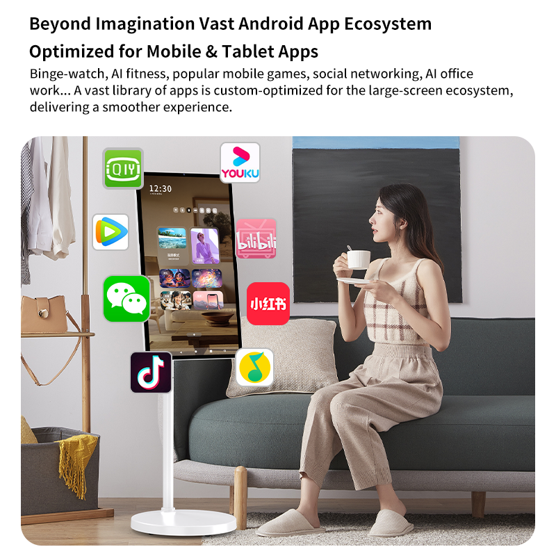 Écran intelligent mobile alimenté par batterie de 27 à 32 pouces, 4K Android 13, écran tactile rotatif, téléviseur portable tout-en-un pour les entreprises