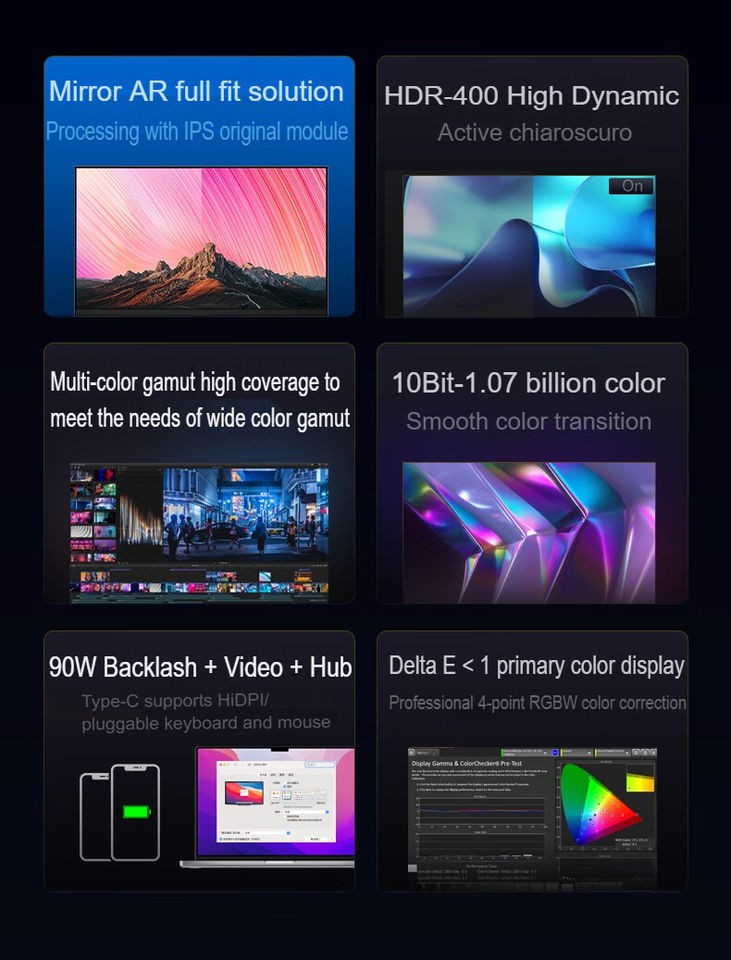 Type d'interface:Prise en charge de l'entrée HDMI, DP, Audio, USB, Type-C