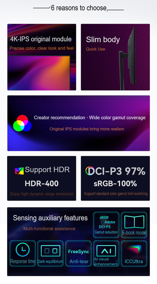 Moniteur professionnel 27 pouces 4K IPS QLED avec 90W 60Hz 100% SRGB G-Sync FreeSync HDR pour la rédaction photo/vidéo