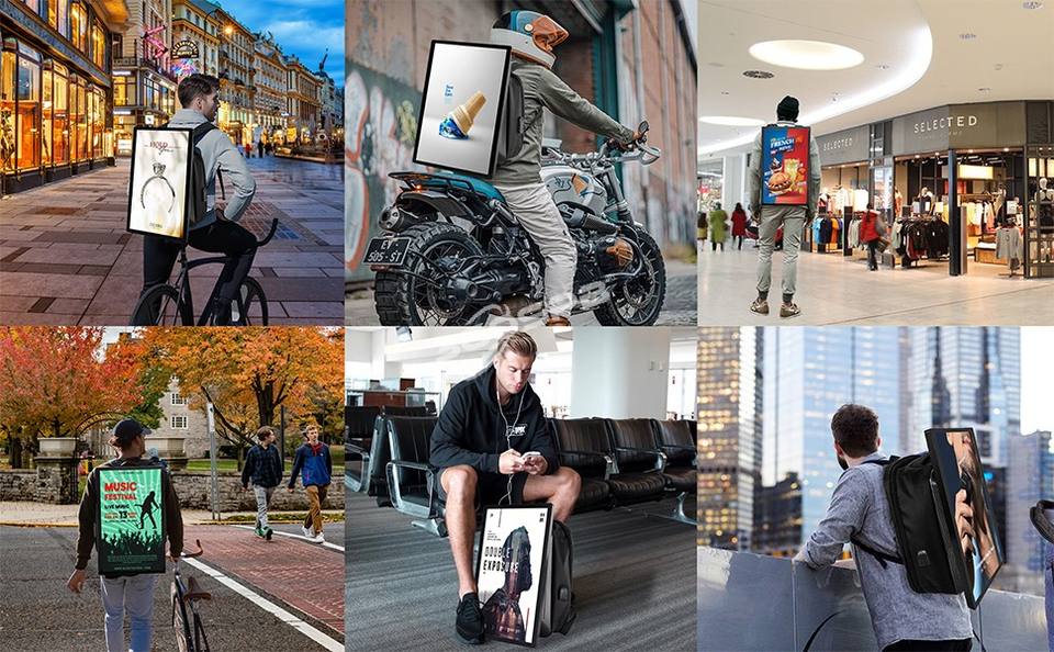 Sac à dos de 27 pouces avec écran LCD, lecteur publicitaire mobile, écran publicitaire, sac à dos portable, affichage numérique pour publicité mobile