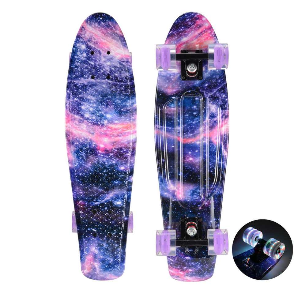 Skateboard Cruiser en plastique 27 pouces, planche à roulettes, Style rétro graphique, galaxie étoilé et fleuri