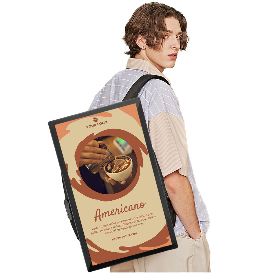 27 pouces LCD publicité sac à dos panneau d'affichage numérique humain marche sac à dos panneau d'affichage publicité Mobile panneau d'affichage