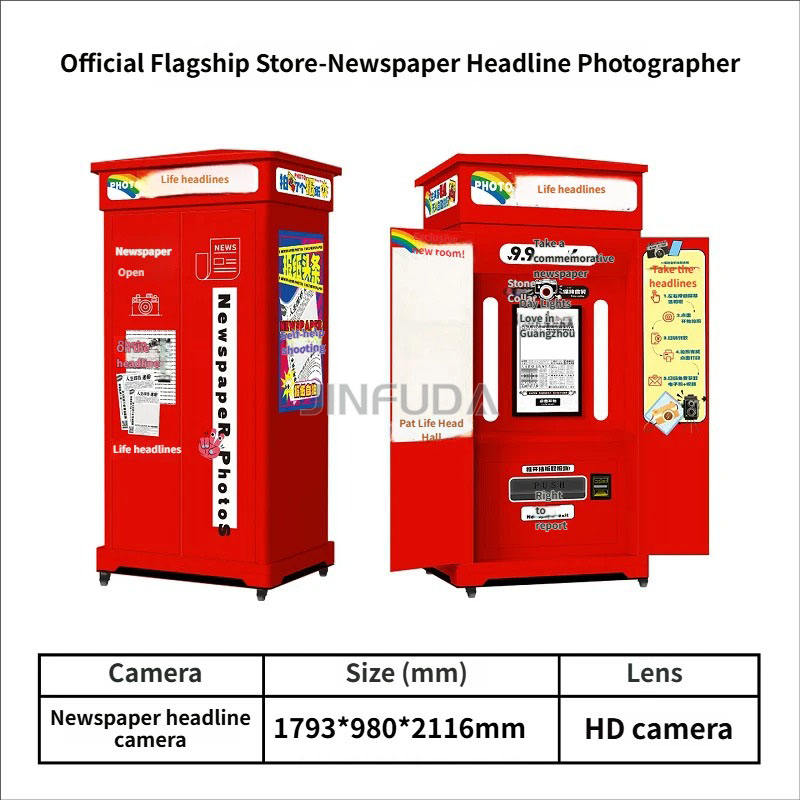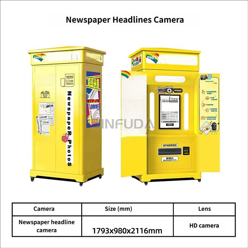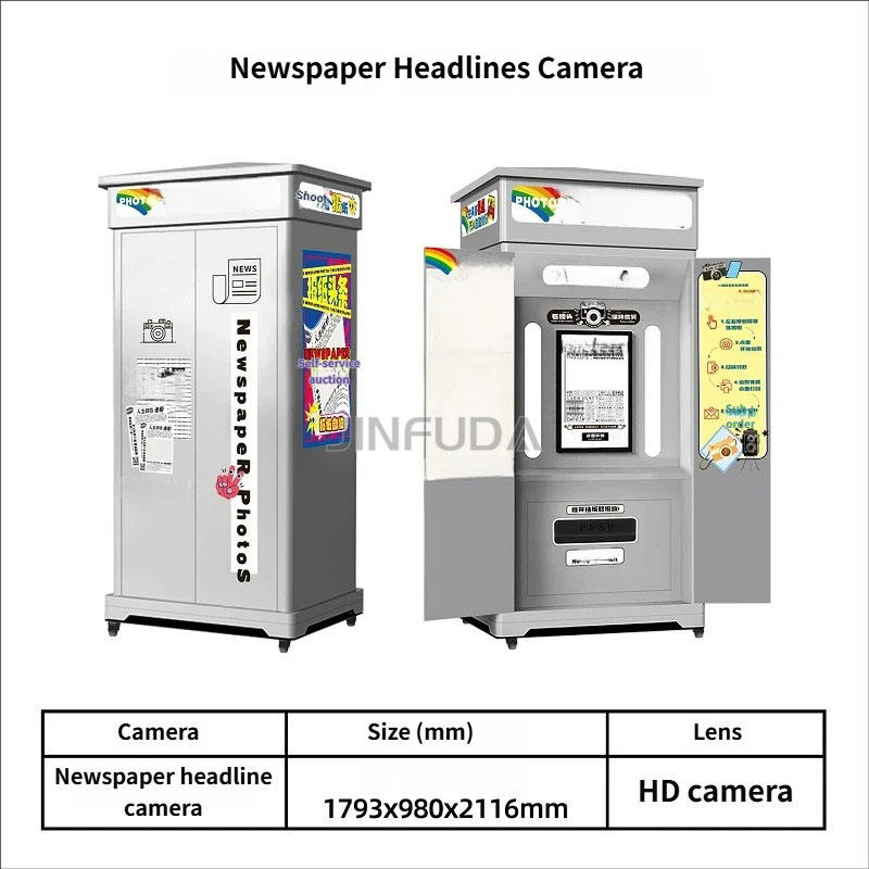 Photomaton à écran tactile incurvé de 27 pouces, style journal, compatible avec les appareils photo reflex, corps en métal