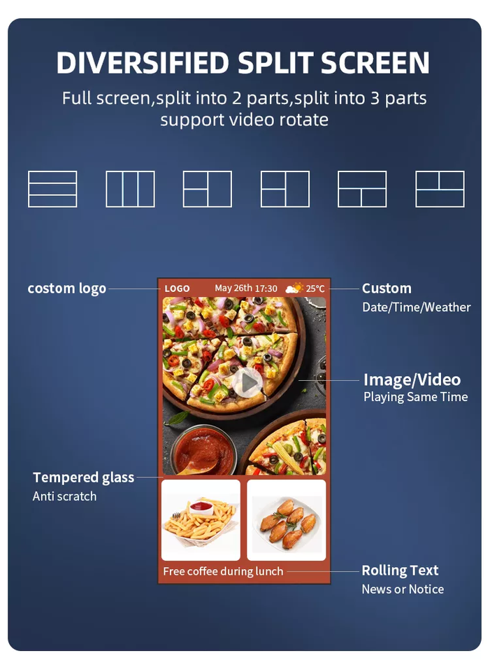 use:Advertising Publish, Retail Store, Shopping Mall, Display Of Dishes, Welcome Display, Self-Service Business, Exhibition Hall, Wayfinding, Airport, Subway, Elevator, Restaurant & Hotel Supplies, Education, Medical Treatment