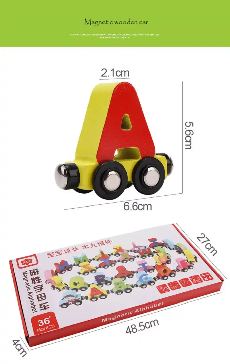 Jouets en bois pour enfant, 27 pièces, lettres ABC, orthographe, aimant en bois, véhicule de Train Alphabet, voiture, jouets éducatifs pour garçons