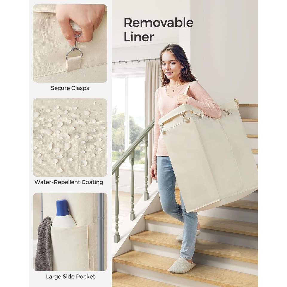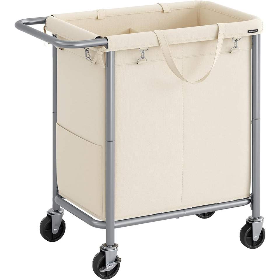 Panier à linge roulant de 27 pouces avec cadre en acier, capacité de 37 gallons (140 L), avec doublure amovible, 2 sections, roues conçues pour une utilisation quotidienne