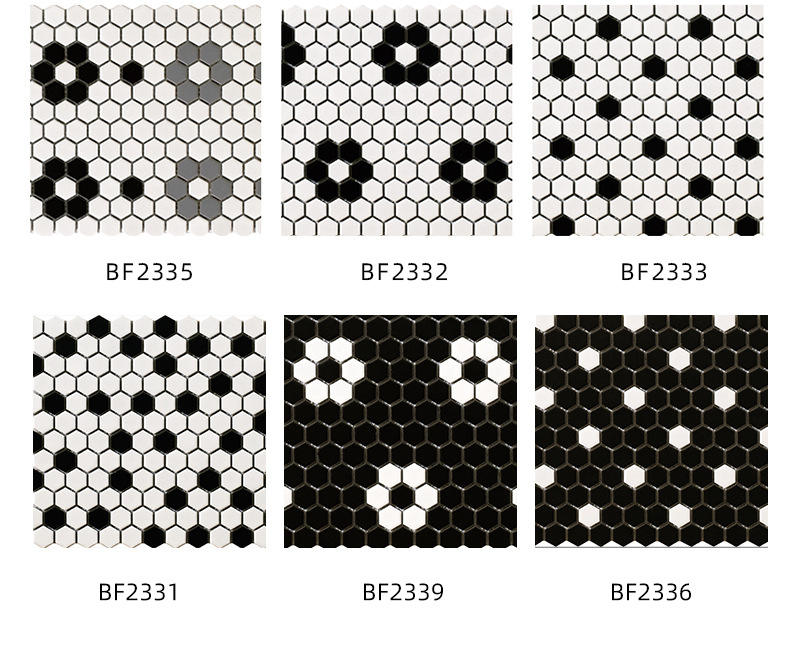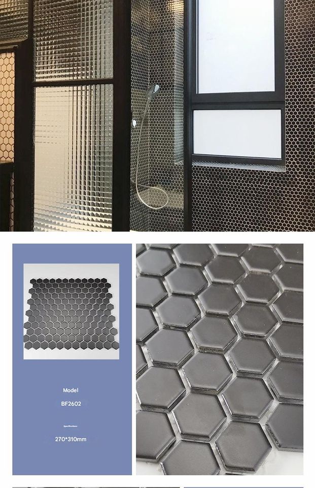 270*310mm petite mosaïque hexagonale mur en céramique salle de bain piscine carreaux de mosaïque noir et blanc carreaux hexagonaux carreaux de piscine