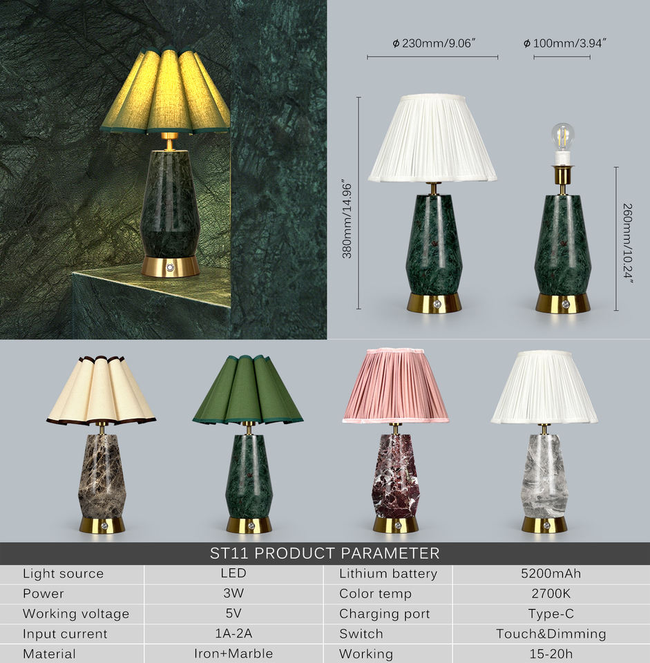 2700K Moderne De Luxe Dimmable Marbre Lampe De Table Tactile Rechargeable Portable Lampe De Chevet Sans Fil Maison But Décoratif