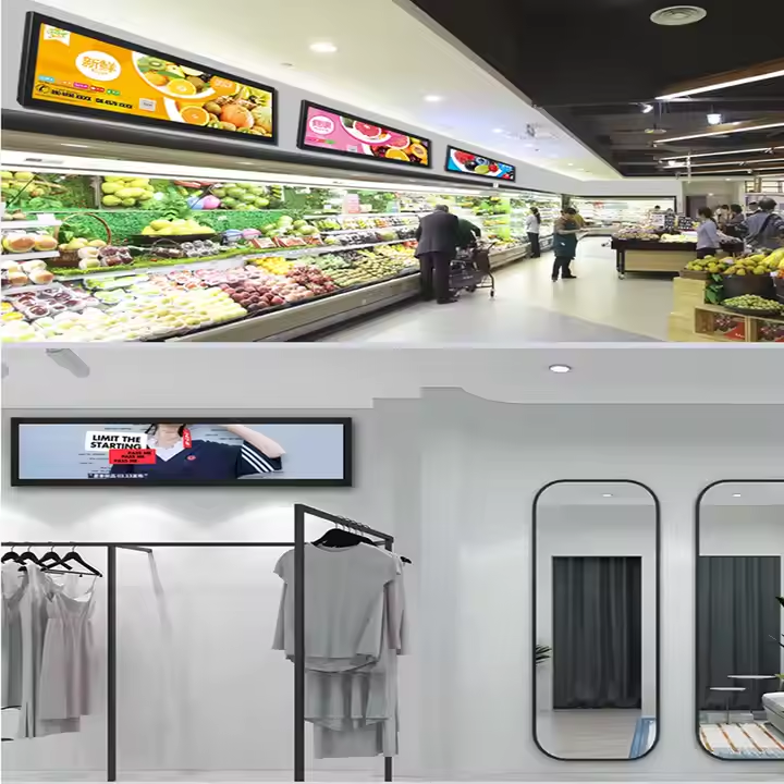 28.6 pouces Android Digital Signage Monitor 350cd Luminosité 1080p Résolution Barre étirée Affichage LCD avec fonction d'image texte