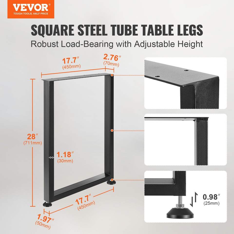 Pieds de meubles carrés réglables en acier renforcé de 28 pouces, robustes, pour table de bureau, lot de 2, DIY, charge maximale 1000 lb pour meubles