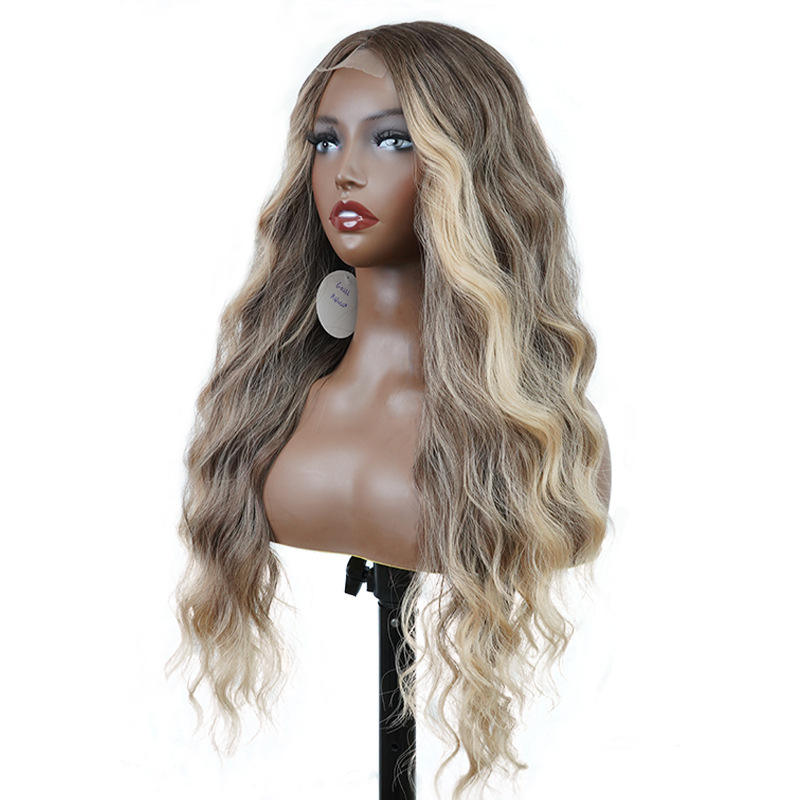 28 pouces blond cendré naturel grande vague petite dentelle frontale perruque de cheveux synthétiques Simulation cuir chevelu résistant à la chaleur perruque pour les femmes