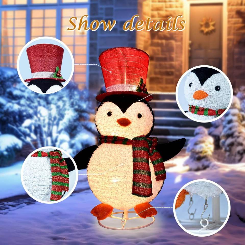 Décorations de Noël d'extérieur lumineuses LED en forme de pingouin de 28 pouces, décorations de jardin gonflables pré-éclairées avec chapeau haut de forme pour les fêtes