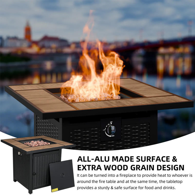 Table de foyer au gaz propane de 28 "50,000 BTU carrée pour l'extérieur pour garder la chaleur Barbecue Chauffage en osier