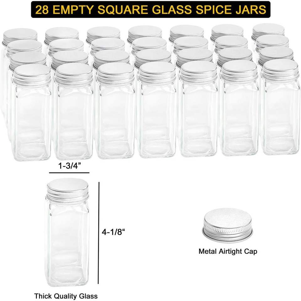 Organisateur de 28 pots à épices, 386 étiquettes pour épices, marqueur à craie et entonnoir pour armoire, comptoir, garde-manger, placard