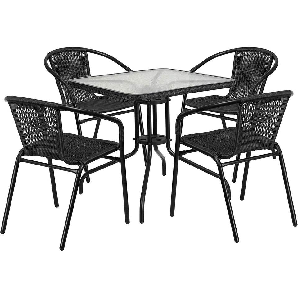 28 "carré intérieur/extérieur PE rotin patio ensemble de salle à manger avec verre métal Bistro meubles 4 sièges pour l'hôpital ou à la maison