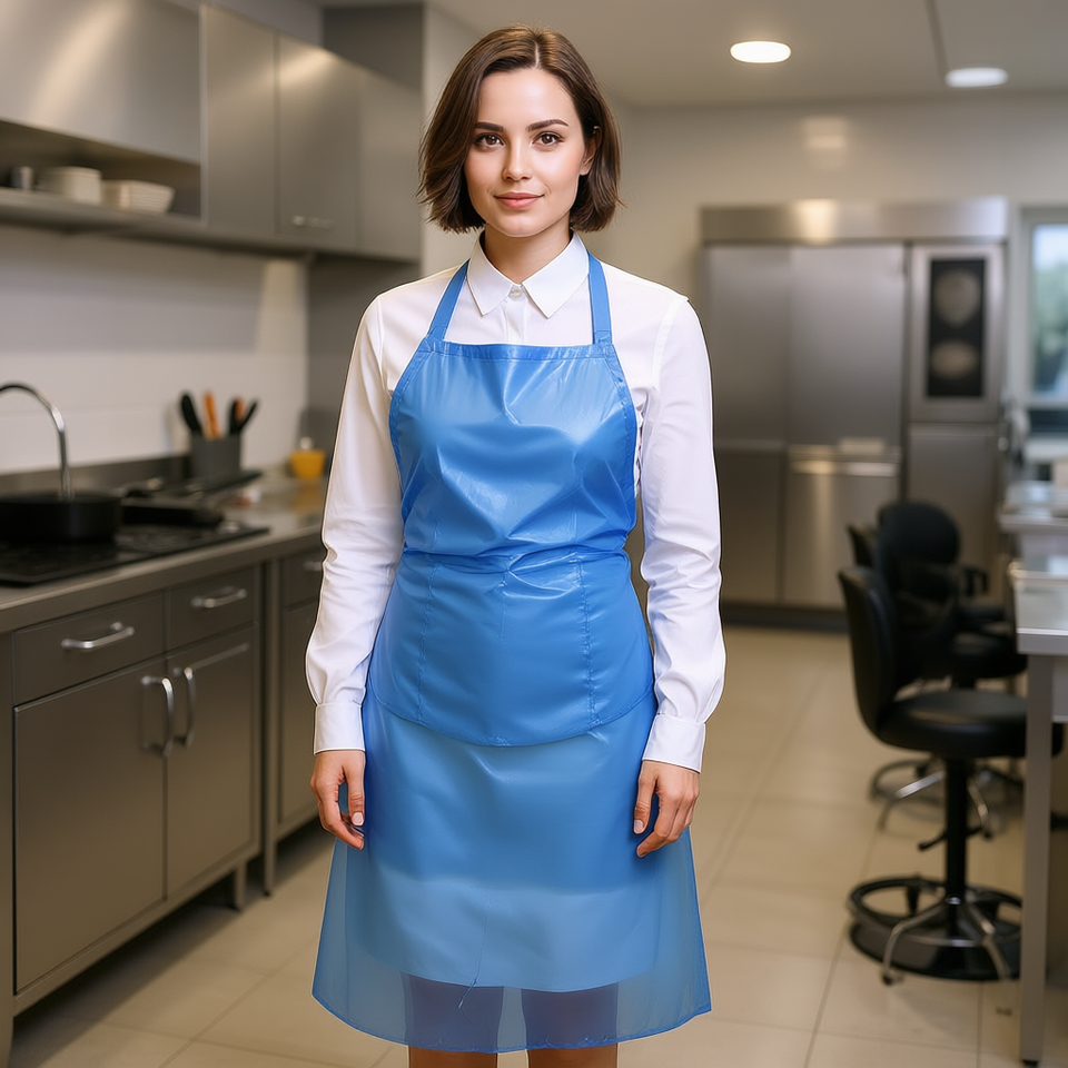 Tablier jetable bleu sans manches 28 x 46 pouces en polyéthylène léger pour travaux de nettoyage, usage industriel unisexe